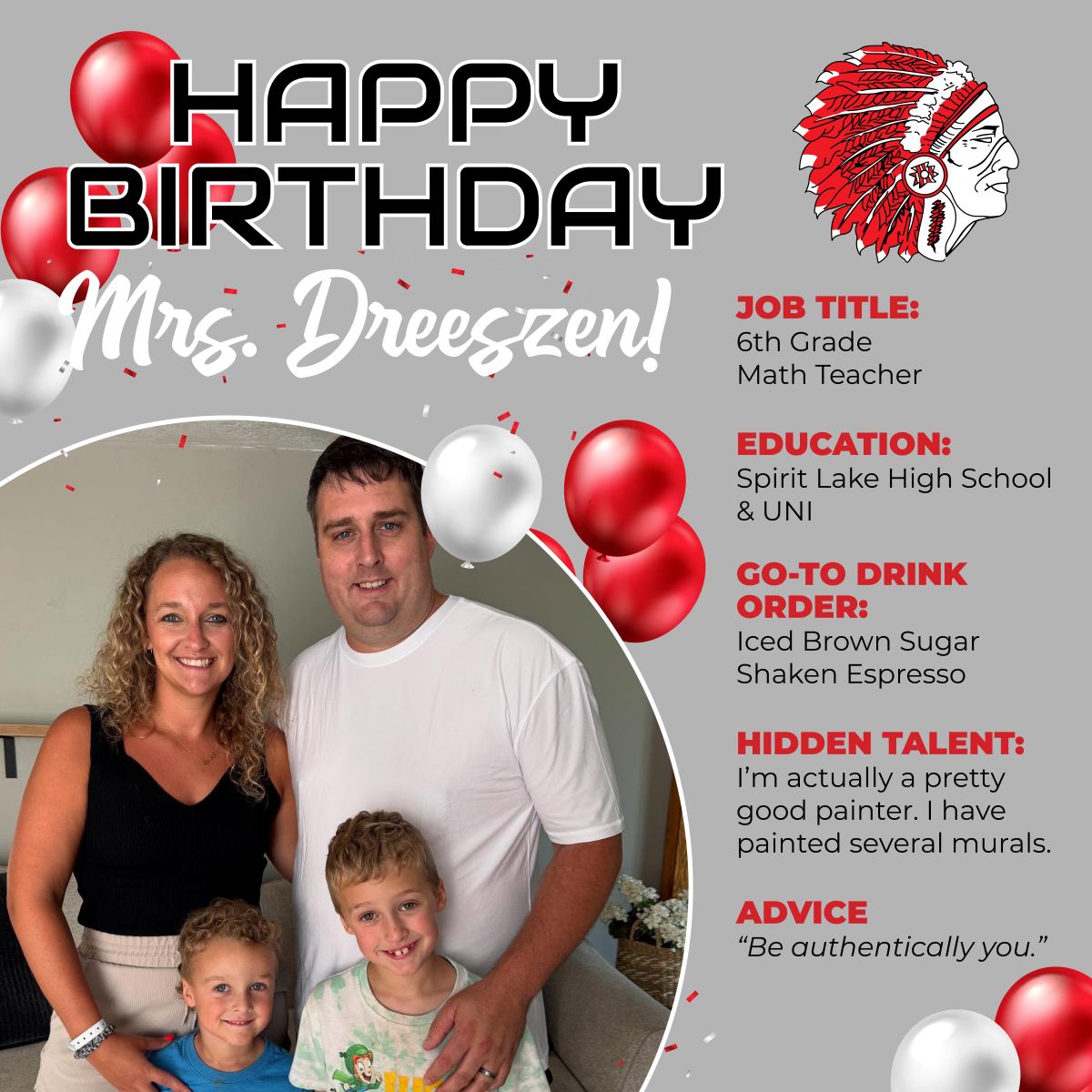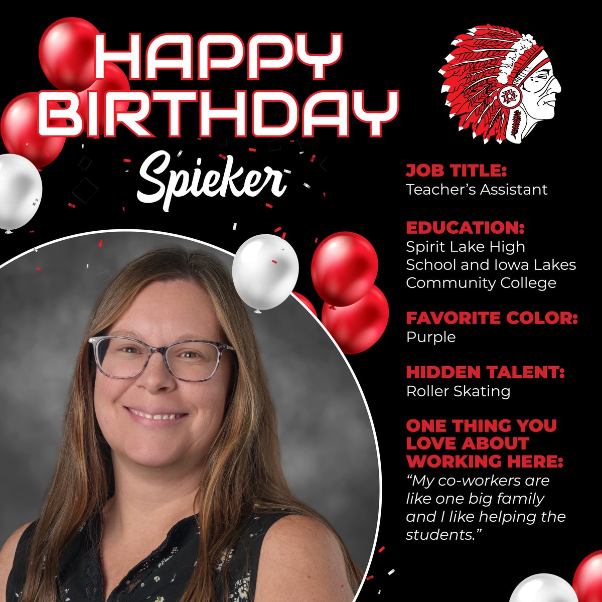 ¡Feliz cumpleaños, Señora Bolluyt! 🎉 Spirit Lake Schools is so grateful for your energy, kindness, and dedication to your students. 🍎 Wishing you a wonderful day!